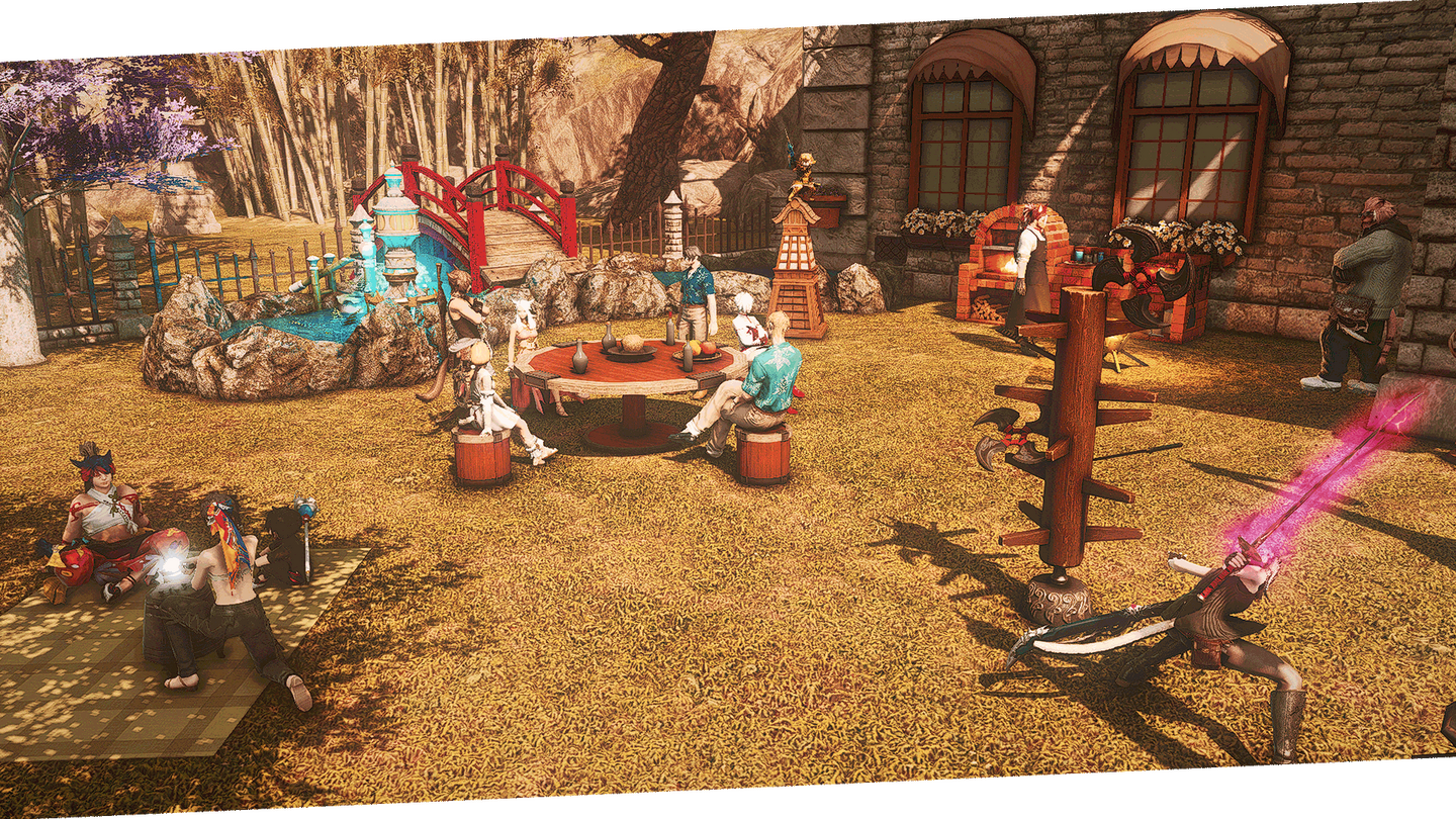 Somos una Free Company de rango 30 con acciones de nivel II y III programadas semanalmente y activadas diariamente. Además, contamos con una mansión equipada con un establo para chocobos, huertos, dummies de entrenamiento y un sótano donde llevamos a cabo diversos eventos.